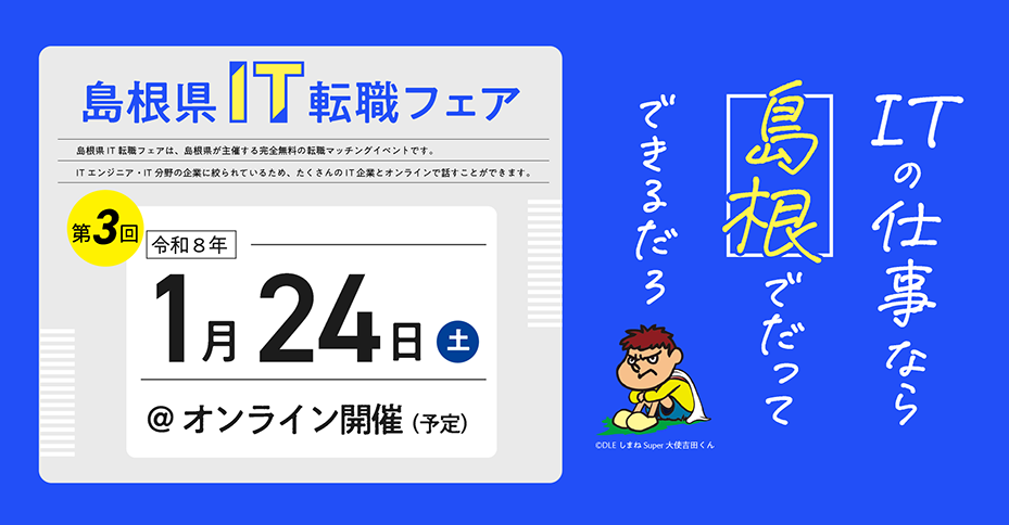 こういった島根のIT企業に一気に会えるイベントの25年度最後の第3回は、2026年1月24日(土)にオンラインで開催予定です!!気になる方は、ぜひ事前予約をお願いします。