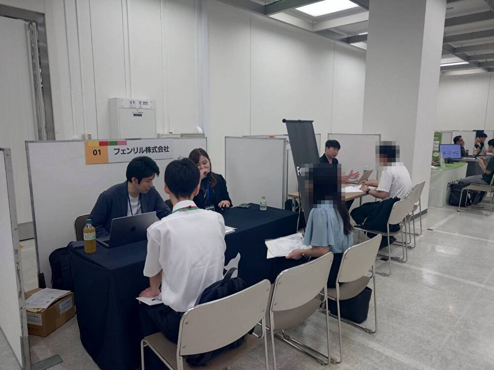 参加者は自由にブースを回り、各企業の採用担当者と面談を行っていました。